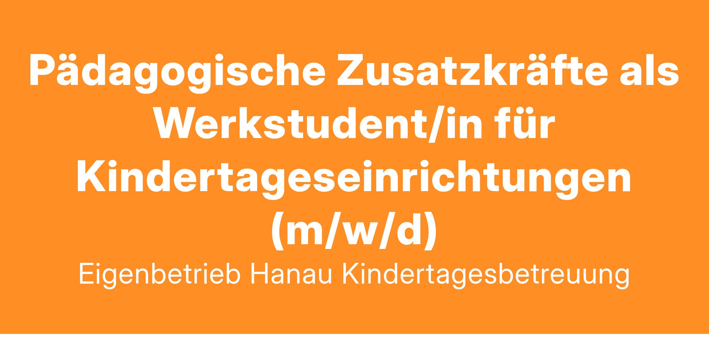 Wir suchen ambitionierte pädagogische Zusatzkräfte. Sie wollen unsere Stadt mitgestalten und gemeinsam mit uns wachsen? Wir suchen ab sofort oder zum nächstmöglichen Zeitpunkt für unsere Kindertageseinrichtungen pädagogische Zusatzkräfte (m/w/d) in Teilzeit als Werkstudent/in oder (z. B. auf Minijob-Basis).
