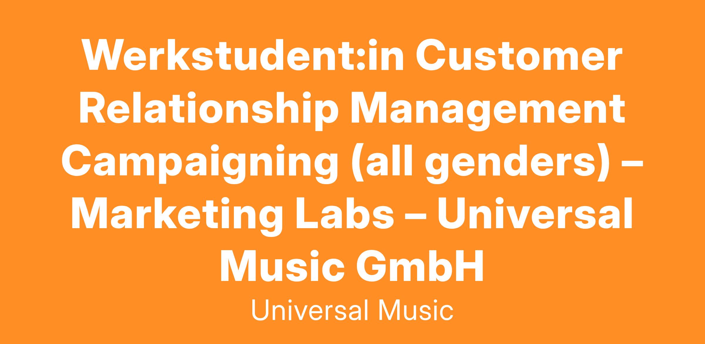 Du möchtest Teil unseres Teams werden? Dann werde unser:e neue:r Werkstudent:in (all genders) für den Bereich Marketing Labs – CRM Campaigning. Die Position ist ab dem 15. August 2024 verfügbar.