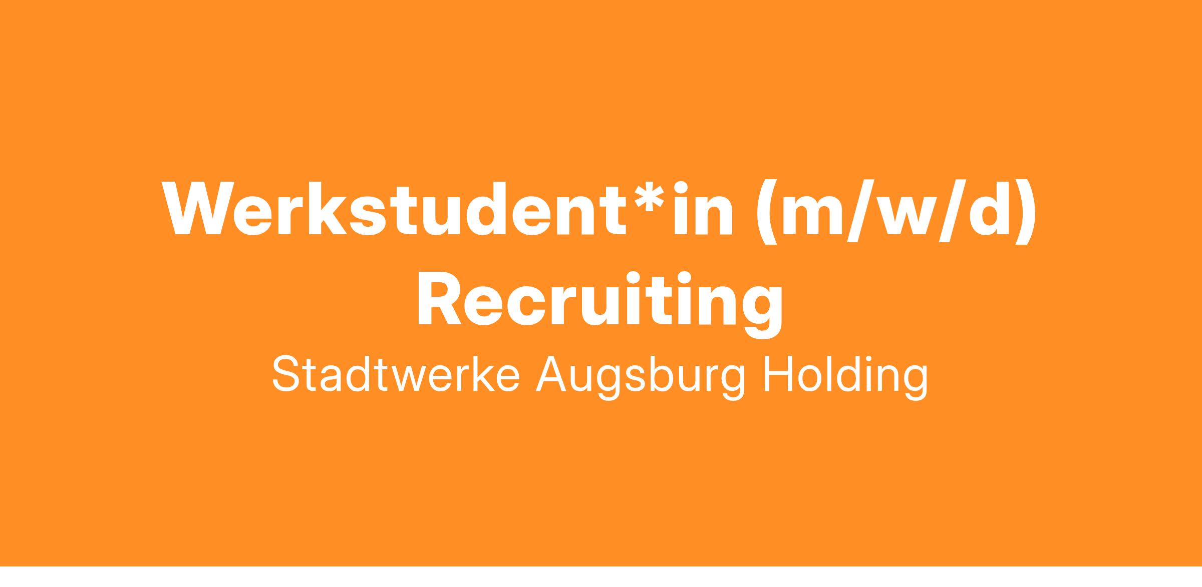 Du hast Spaß daran, neue Talente zu entdecken und kreative Lösungen für Recruiting-Herausforderungen zu entwickeln? Du überzeugst mit deiner proaktiven Arbeitsweise, Kommunikationsstärke und hast erste Erfahrungen im Personalwesen? Dann werde Teil der Energie- und Mobilitätswende und liefere als Werkstudent*in (m/w/d) Recruiting Deinen individuellen Beitrag, um Deine Stadt mit sauberer Energie, grüner Mobilität und reinem Trinkwasser zu versorgen!