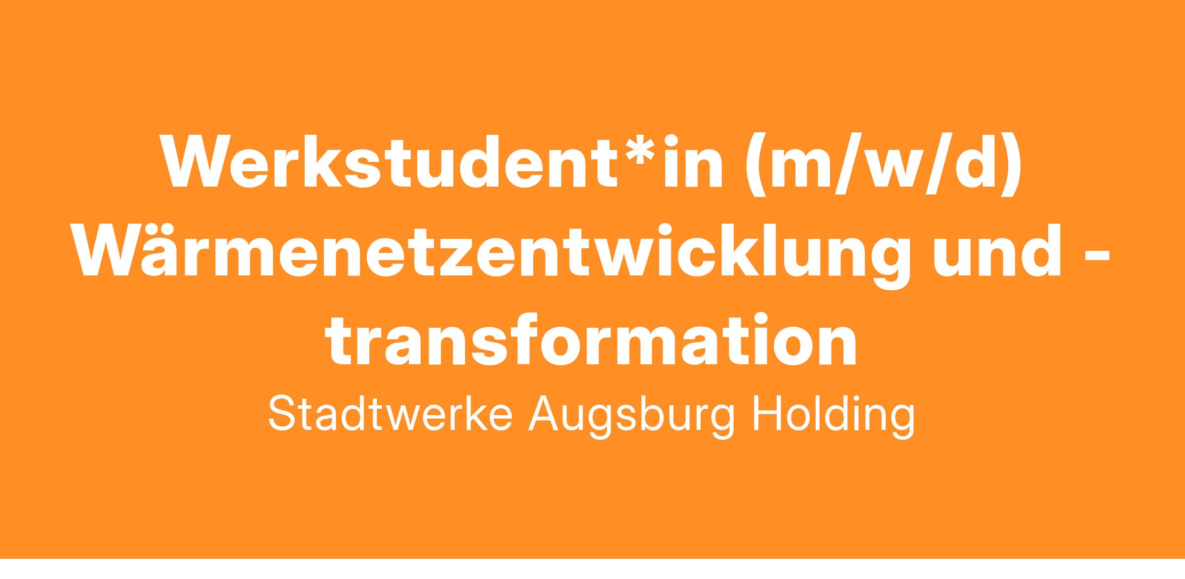 - Du unterstützt bereichsübergreifend bei der Entwicklung von Wärmesystemen in Augsburg und der Region, dazu gehören bspw. erste Bedarfsanalysen und Potenzialprüfungen