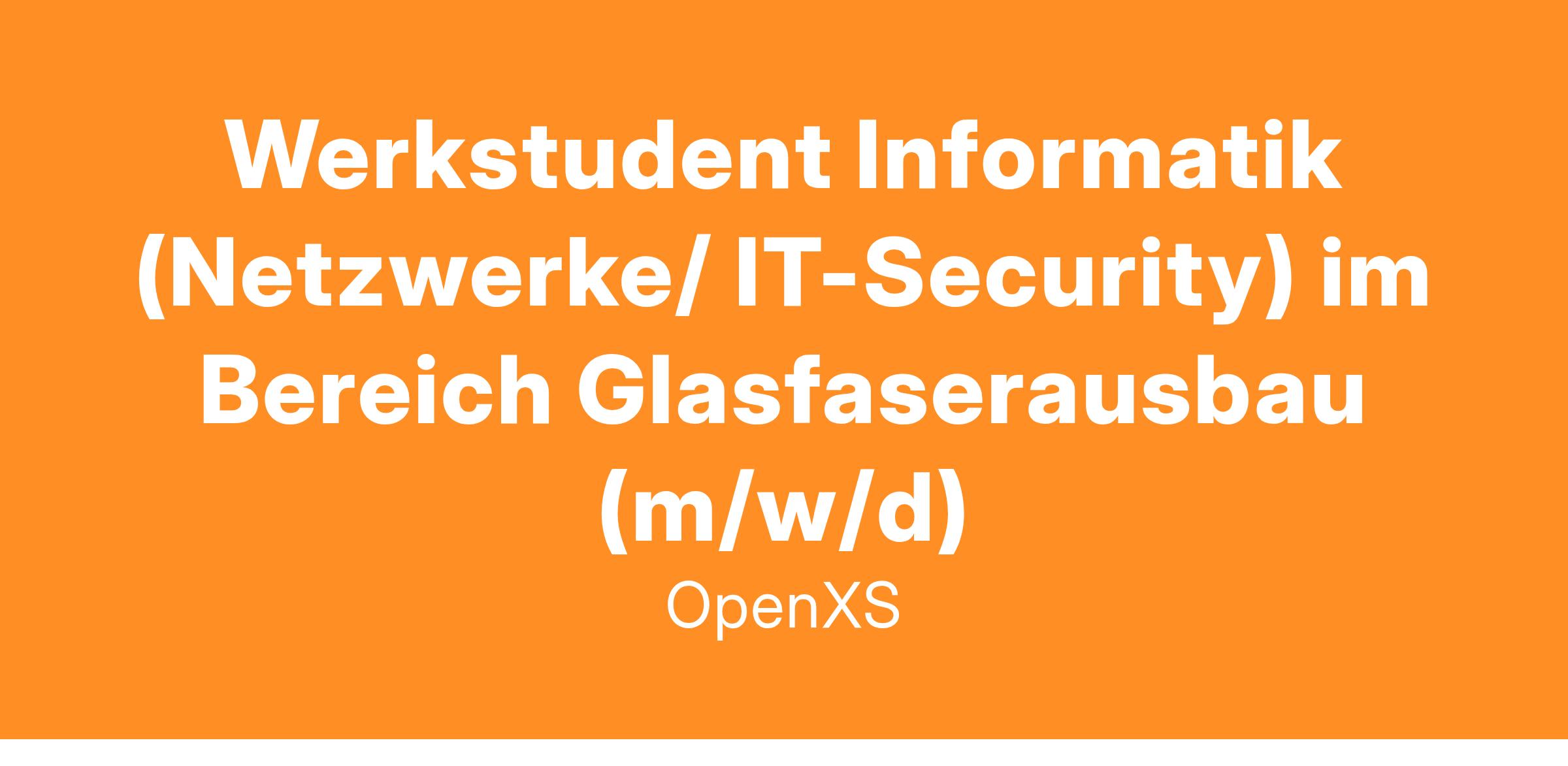 Für unseren Standort in Flensburg suchen wir zum nächstmöglichen Zeitpunkt einen Werkstudenten Informatik (Netzwerke/IT-Security) im Bereich Glasfaserausbau (m/w/d).
