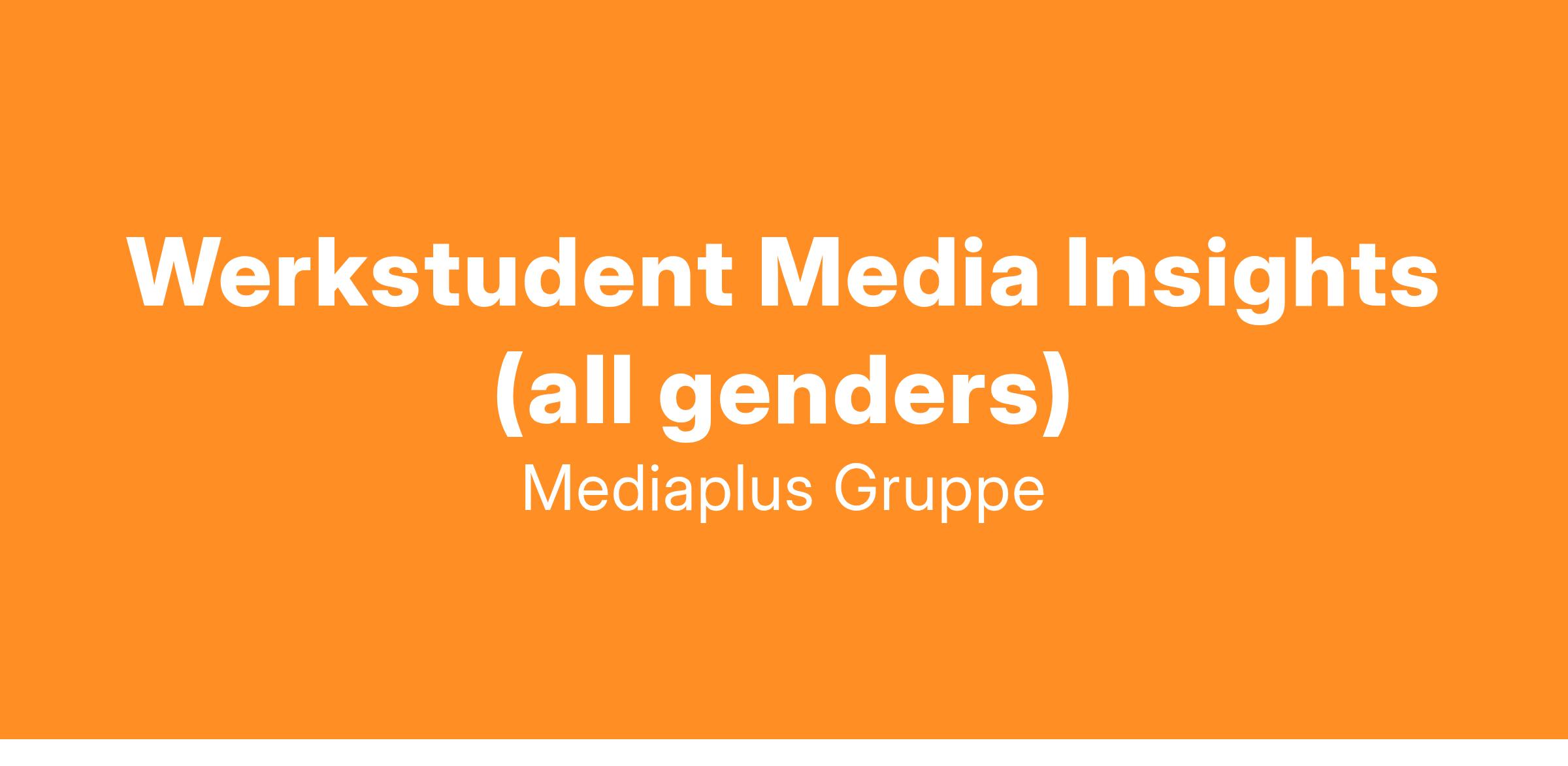 Zum nächstmöglichen Zeitpunkt suchen wir an unserem Standort in München einen Werkstudent Media Insight (all genders) für den Bereich MP Media Insights innerhalb der MP Insights, Teil derMediaplus Gruppe, der größten inhabergeführten Mediaagentur Europas unter dem Dach der Serviceplan Group.