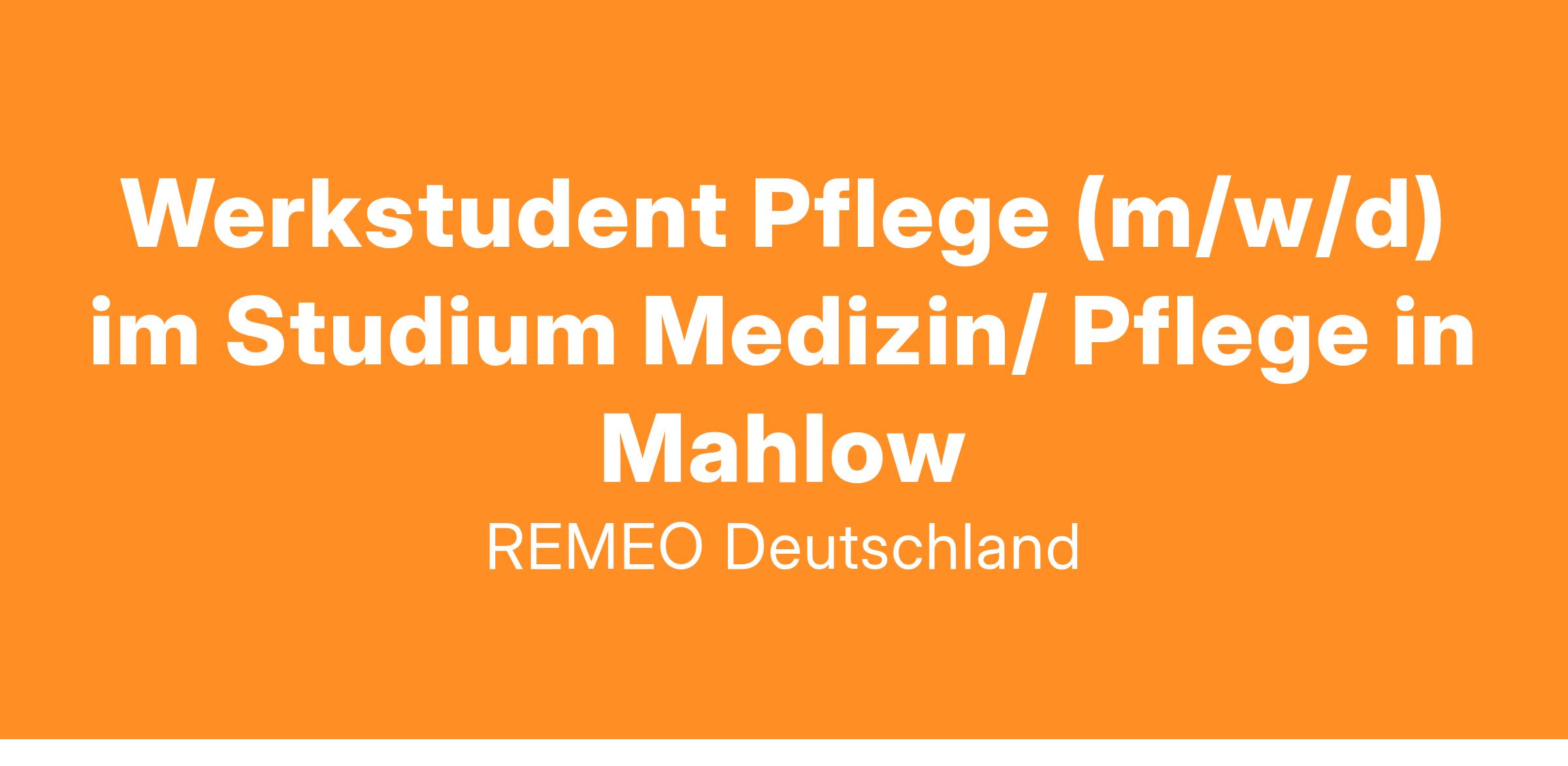Wir suchen Dich als Werkstudent*in im Studium Medizin/ Pflege/ Pflegemanagement für den Pflege- und Funktionsdienst bei Remeo für unseren Standort in Mahlow (bei Berlin)!